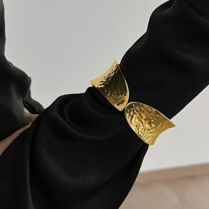 ✨ Gold Plated Anti Tarnish Stainless Steel Open Lightweight Wide Cuff Bracelet for girls & women ✨