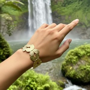 ✨ Gold Plated Anti Tarnish Stainless Steel Open Floral Cuff Bracelet for girls & women ✨