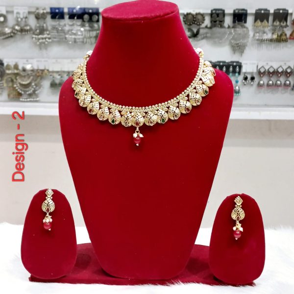 Enhance your elegance with one gram gold polish Rajwadi choker set, inspired by traditional rajasthani designs. Featuring intricate craftsmanship, a rich high gold finish, and matching hanging earrings. This set is perfect for weddings, festivals and special occasions. It pairs beautifully with lehengas, sarees and other ethnic outfits, making you stand out with timeless grace and sophistication. This set is designed to resemble real gold jewellery and offers a luxurious yet lightweight feel, making it ideal for both everyday wear and special occasions. 🌙👑