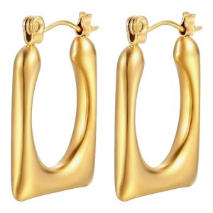 🌸 These earrings have abstract and sculptural design with square form in a white and gold finish accented by touches of metallic gold. 💛✨