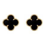🌸 These earrings have abstract and sculptural design with square form in a matte black and white finish accented by touches of metallic gold. 💛✨